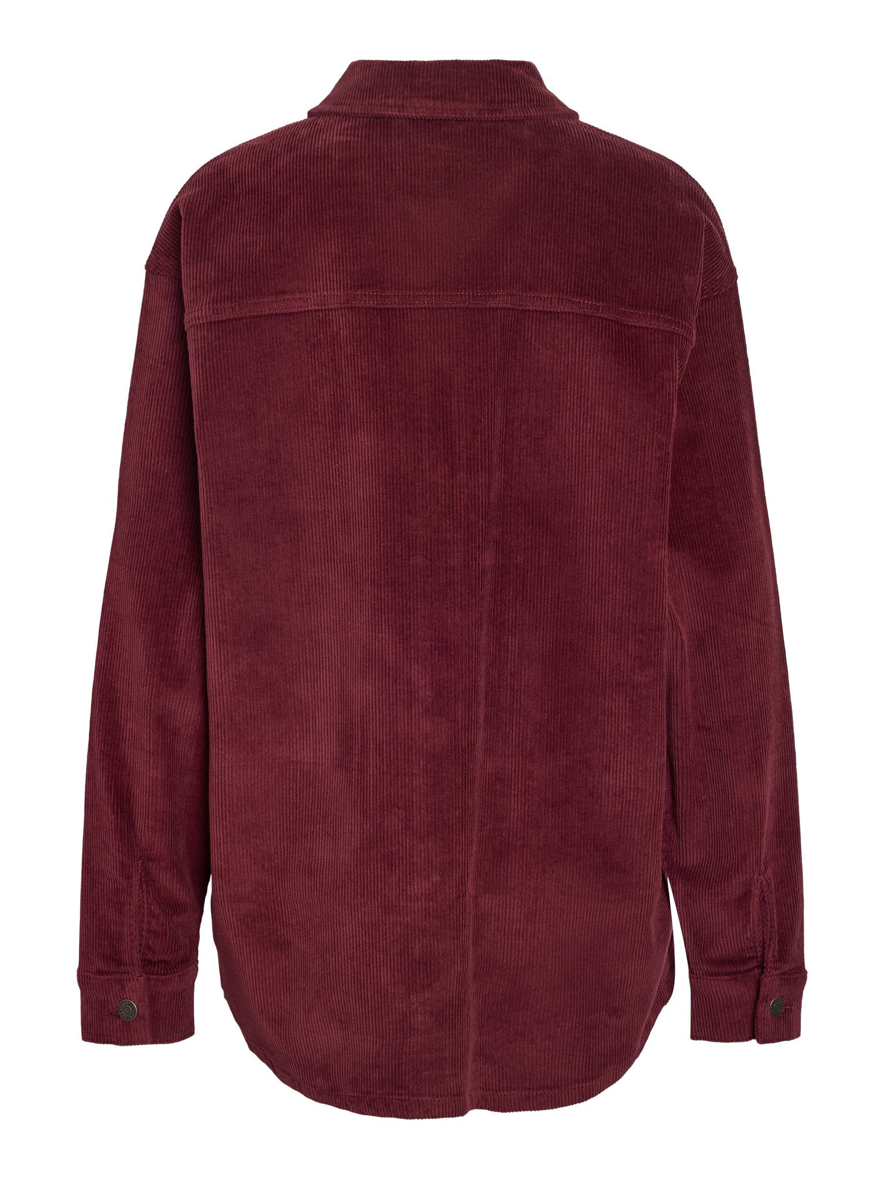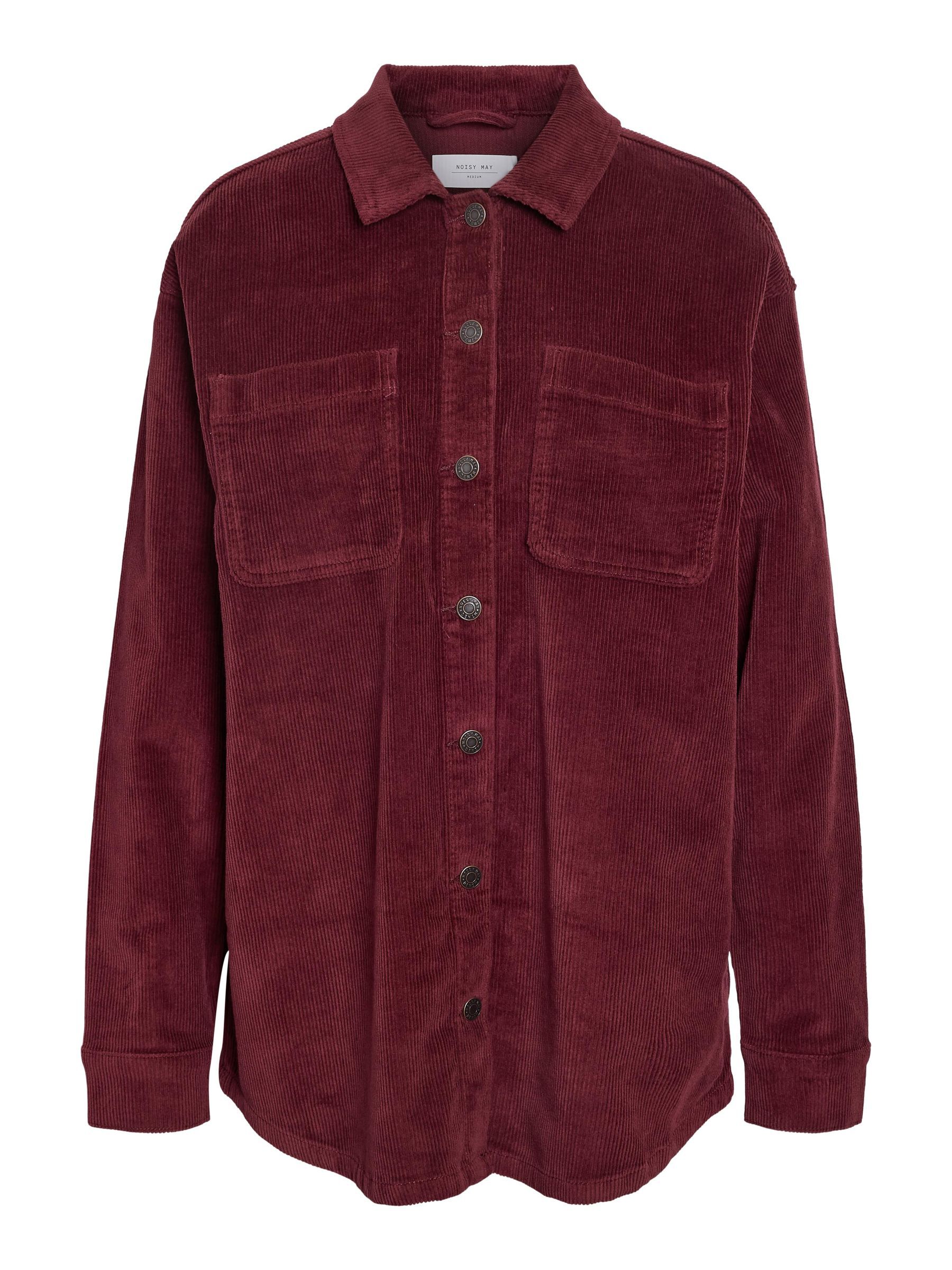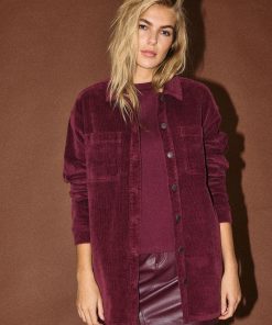– Long sleeved corduroy shacket- Spread collar- Dropped shoulders- Buttoned cuffs- Patch pockets at chest- Button-up front- Curved hem- Oversized fit- Model is wearing size M