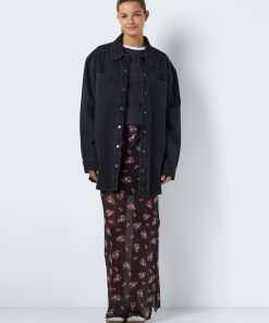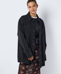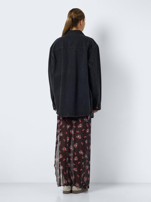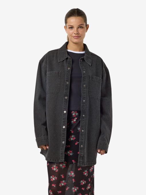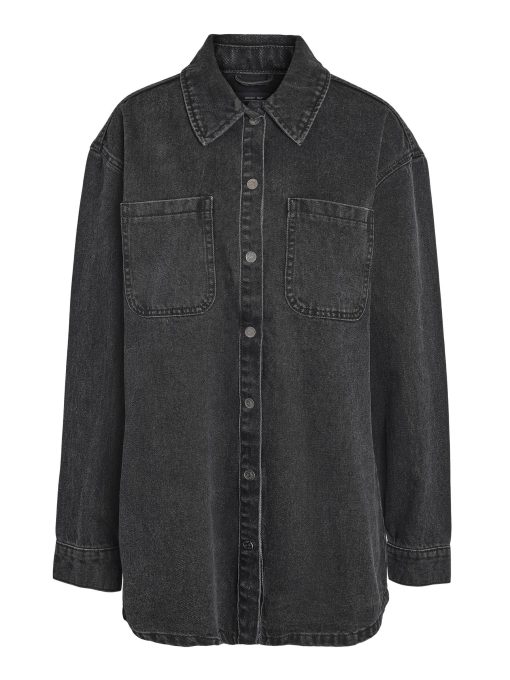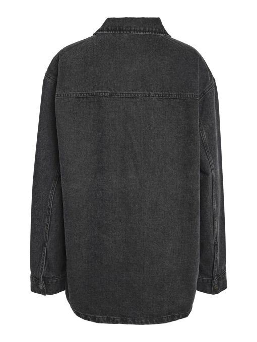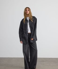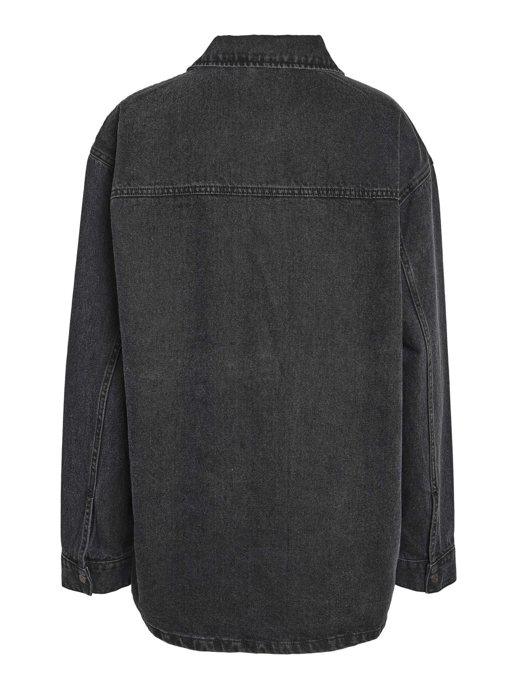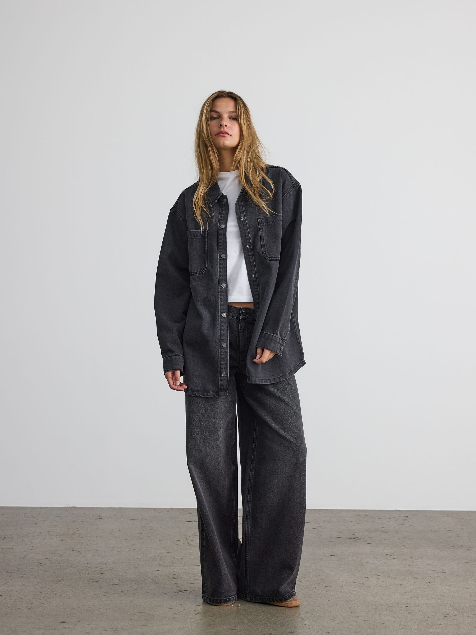 – Longline denim shacket- Regular collar- Dropped shoulders- Long sleeves- Buttoned cuffs- Patch pockets at chest- Button-up front- Relaxed fit- Model is wearing size M