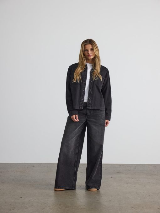 Noisy May Women’s Clothes Denim Shirt | Black Denim