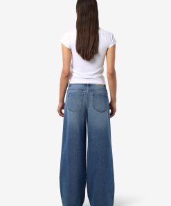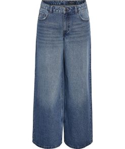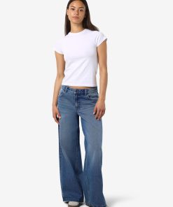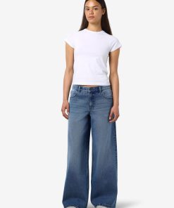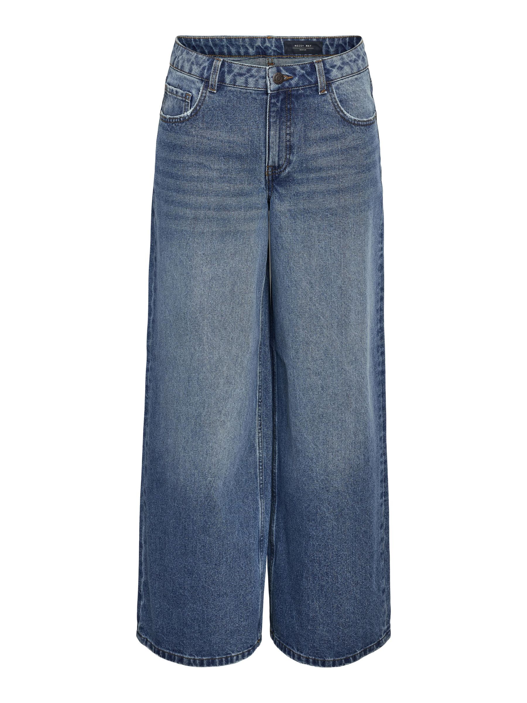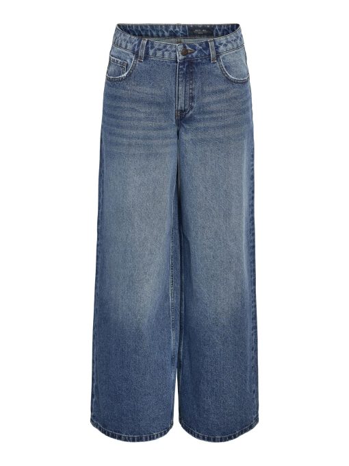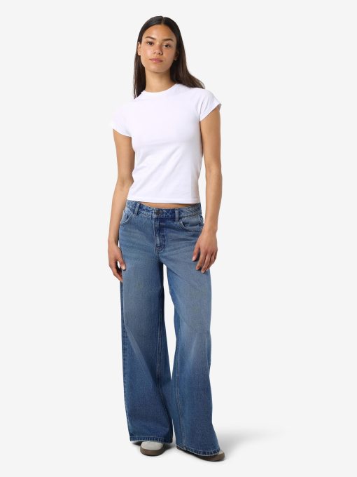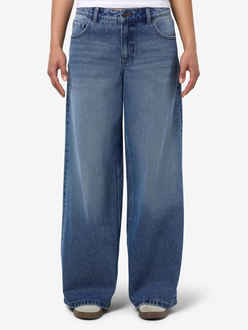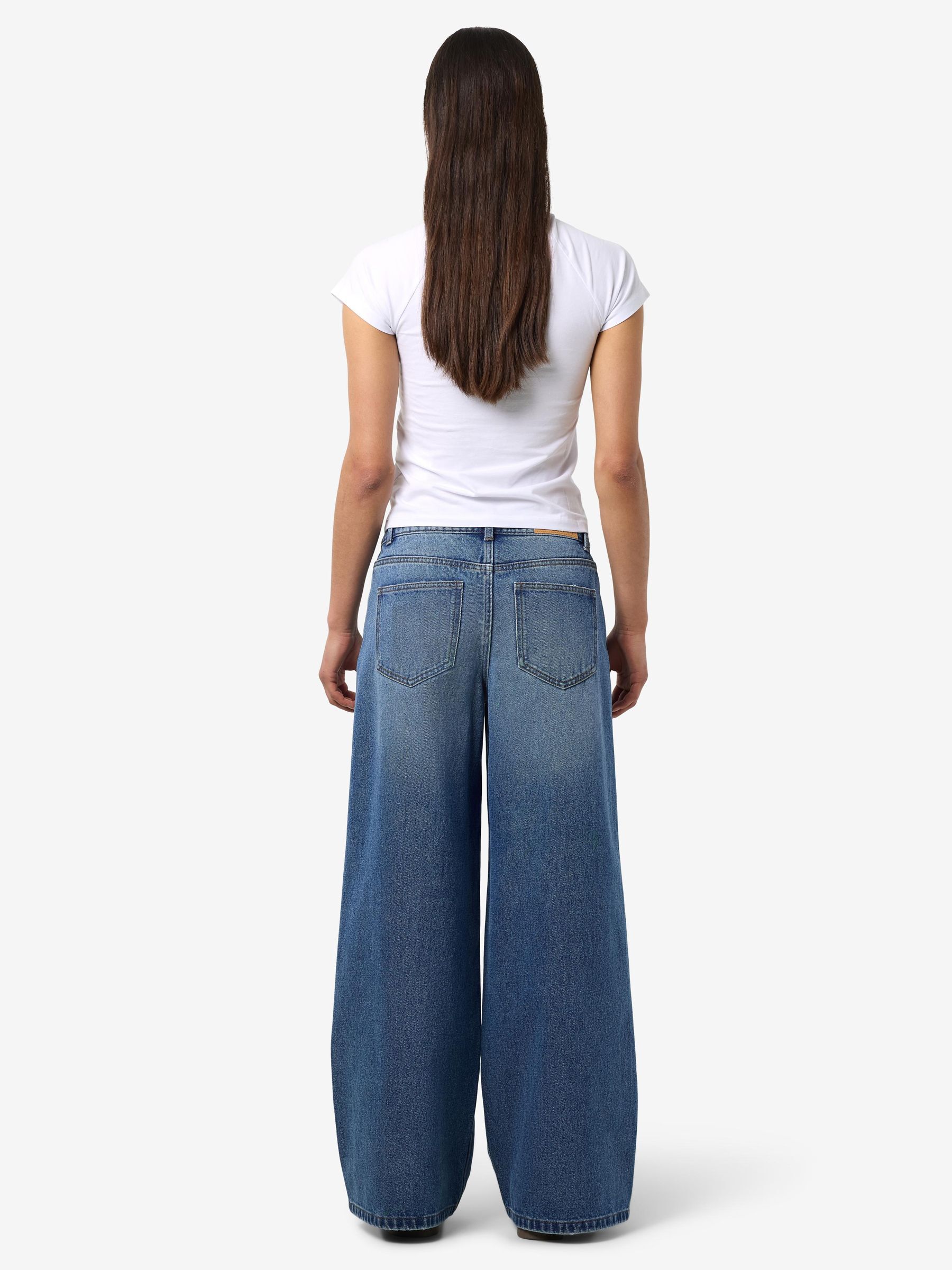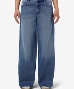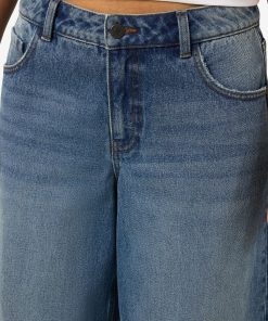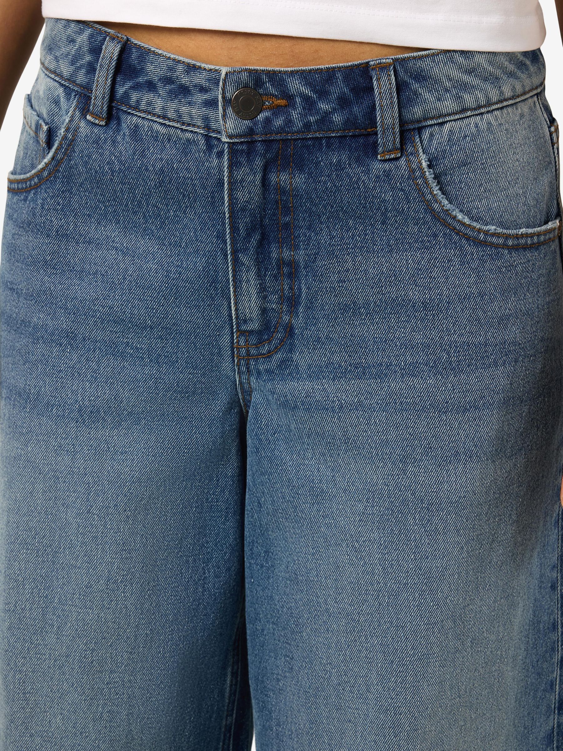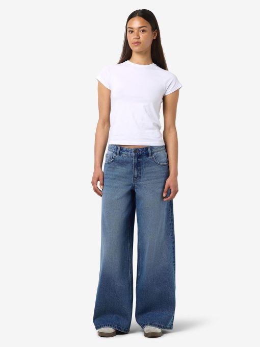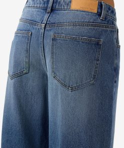 – Mid waist wide leg jeans- Belt loops- Jacron patch- 5-pocket design- Zip fly with rivet button fastening- Faded detail- Extra long stacked length- Wide fit