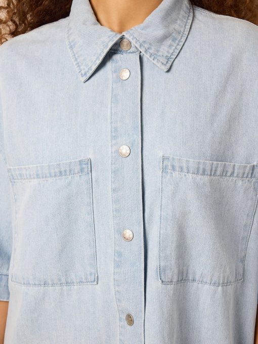 Noisy May Women’s Clothes Oversized Denim Shirt | Light Blue Denim