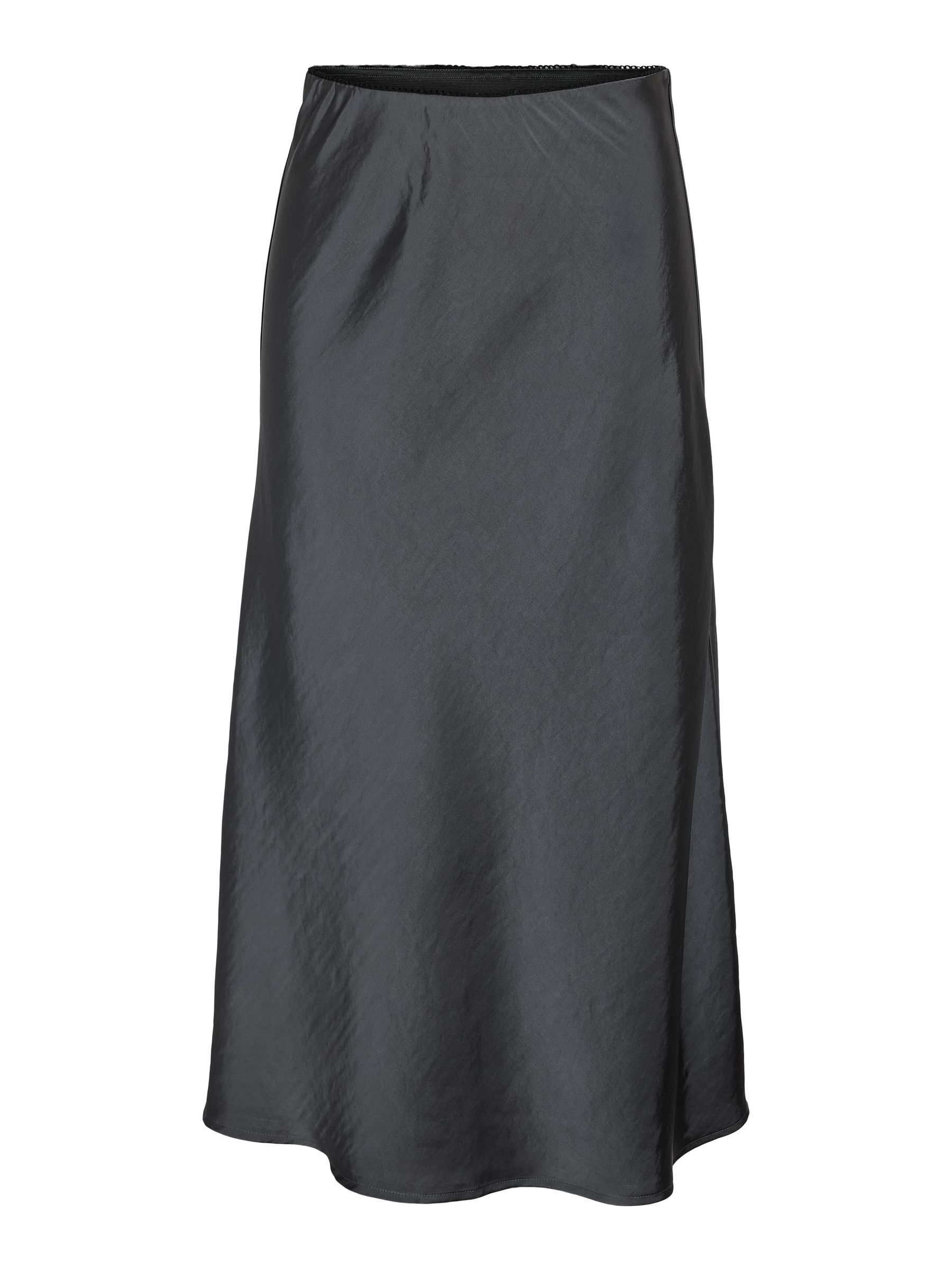 – Satin midi skirt- Mid rise elasticated waist- Shiny fabric- Regular fit